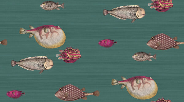 Fish appear as motifs in some of Piero Fornasetti’s earliest work – such as luxurious silk scarves, trays and decorative porcelain – having been fascinated by the dichotomy of marine life’s simple aspect hiding a fascinating, mysterious nature within the depths of the ‘aquarium’. The whimsical composition and scale of Acquario creates a unique and striking wallcovering, whilst the colour palettes retain a Fornasetti classicism in tones of Ink, Seafoam, and Soot with Taupe providing a muted alternative.