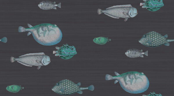 Fish appear as motifs in some of Piero Fornasetti’s earliest work – such as luxurious silk scarves, trays and decorative porcelain – having been fascinated by the dichotomy of marine life’s simple aspect hiding a fascinating, mysterious nature within the depths of the ‘aquarium’. The whimsical composition and scale of Acquario creates a unique and striking wallcovering, whilst the colour palettes retain a Fornasetti classicism in tones of Ink, Seafoam, and Soot with Taupe providing a muted alternative.