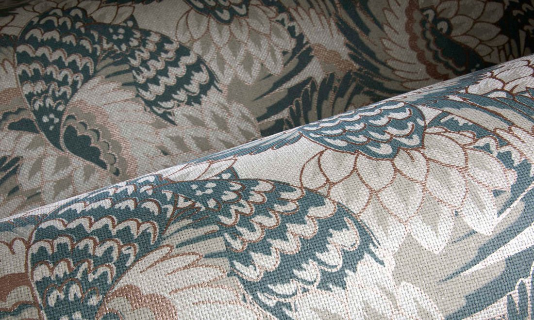 Wallcovering made of abundant materials, including soft suede, printed on natural paper weave and embroidered chinoiserie on raw cotton.
