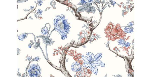 This reproduction of a late 17th century French document was originally created for bed draperies in The Hermitage, a historical plantation and museum located in Davidson Country, Tennessee owned by Andrew Jackson, the seventh President of the United States. The original fabric was hand-printed at the Scalamandré mill in Long Island City, giving this classic design a touch of both company history and national history. We are excited to present Andrew Jackson Floral in its latest incarnation as a striking new wallpaper. With stylized blooms and climbing boughs, this seventeen-color print is ready to grace the walls of a master bedroom or add panache to a foyer.