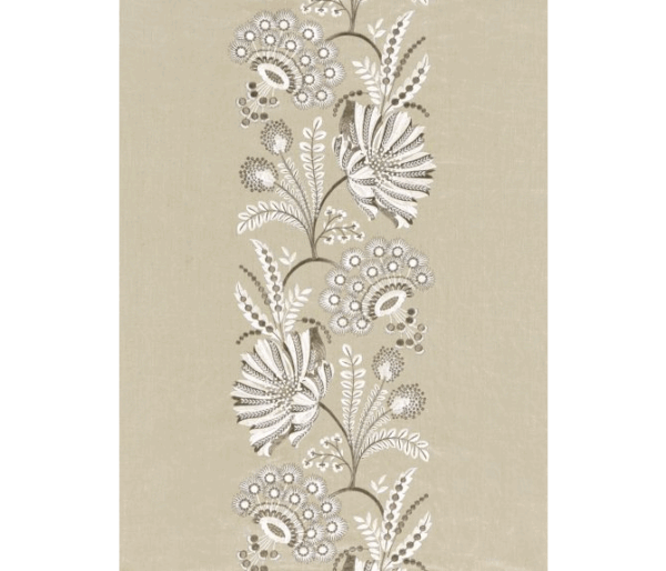 Annelise Embroidery is both decorative and modern. Whimsical stitching details bring this graceful floral vine to life in shades of blue on ivory and neutrals on muted, colored grounds. The panel stripe works beautifully when centered on seat backs and cushions, or to create dramatic stripes on floor length curtains.