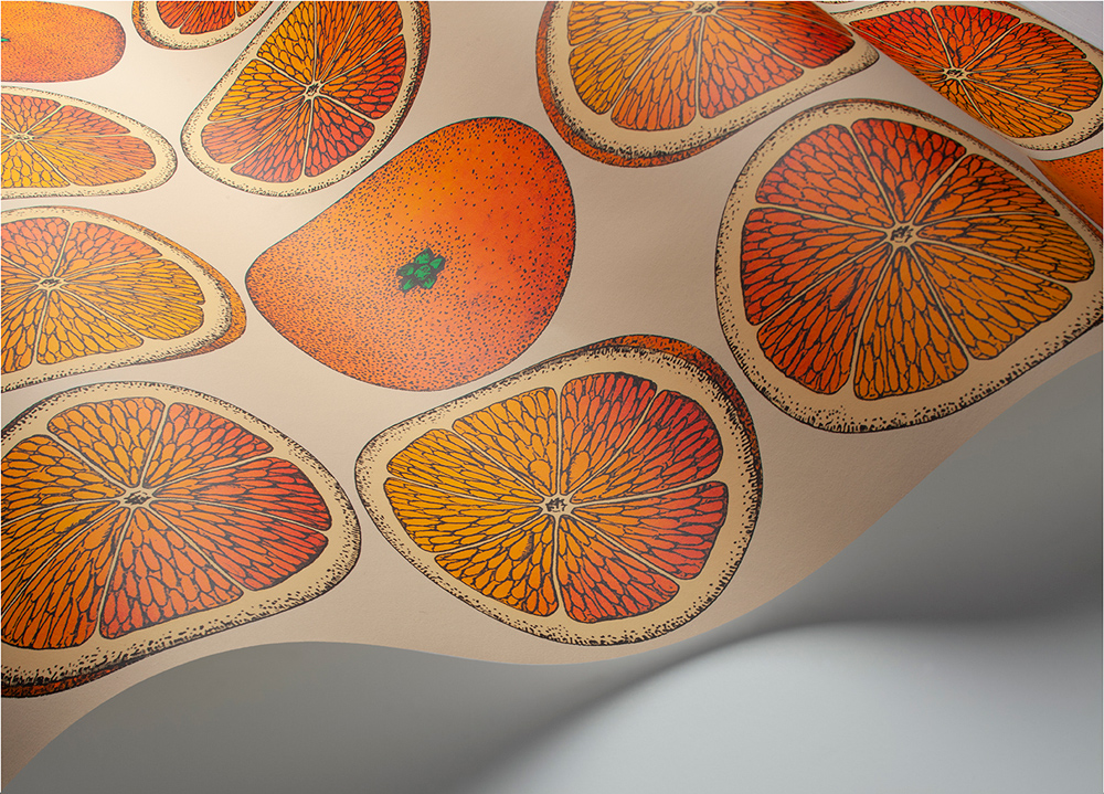 The bold repeat of Mediterranean citrus fruits seen in Arance are a prolific theme throughout the Fornasetti archive, originally appearing on the tray ‘Fette d’arancia’ in the 1950s and repurposed by Barnaba Fornasetti in the 90s as a graphic fabric print. This organic study has been produced in true-to-life palettes of Blood Orange, Orange, and Lemon on strikingly contrasting grounds of chalky Seafoam and Stone, as well as the sumptuous Ink.