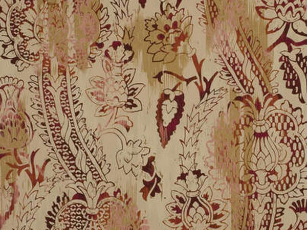 The wallpaper ARIA is part of Boussac Collection. Persian-inspired Renaissance period motif. Wallpaper hand-printed in a frame. Full roll width is 27″, roll length is 5 yards.