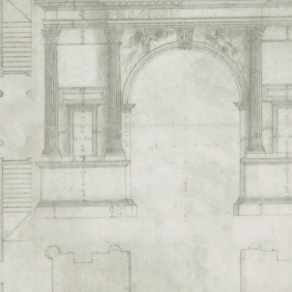 During the 16th Century British architecture shifted and was influenced by the high Renaissance architecture of Italy which called upon classical Roman features. Augustus displays the sketch of a dome, reminiscent of the famed Duomo of Florence, and a decorated stone façade with Roman Doric columns.