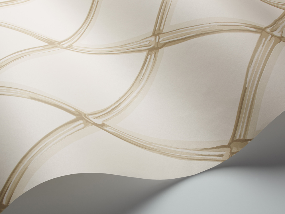 Featuring the classic bamboo trellis, this elegant latticed wallpaper is a tribute to the eighteenth-century landscaped garden of the Chateau de Bagatelle, itself designed in an Anglo-Chinese style. Shown in 5 soft color-ways of olive, duck egg, ivory, stone, and yellow.