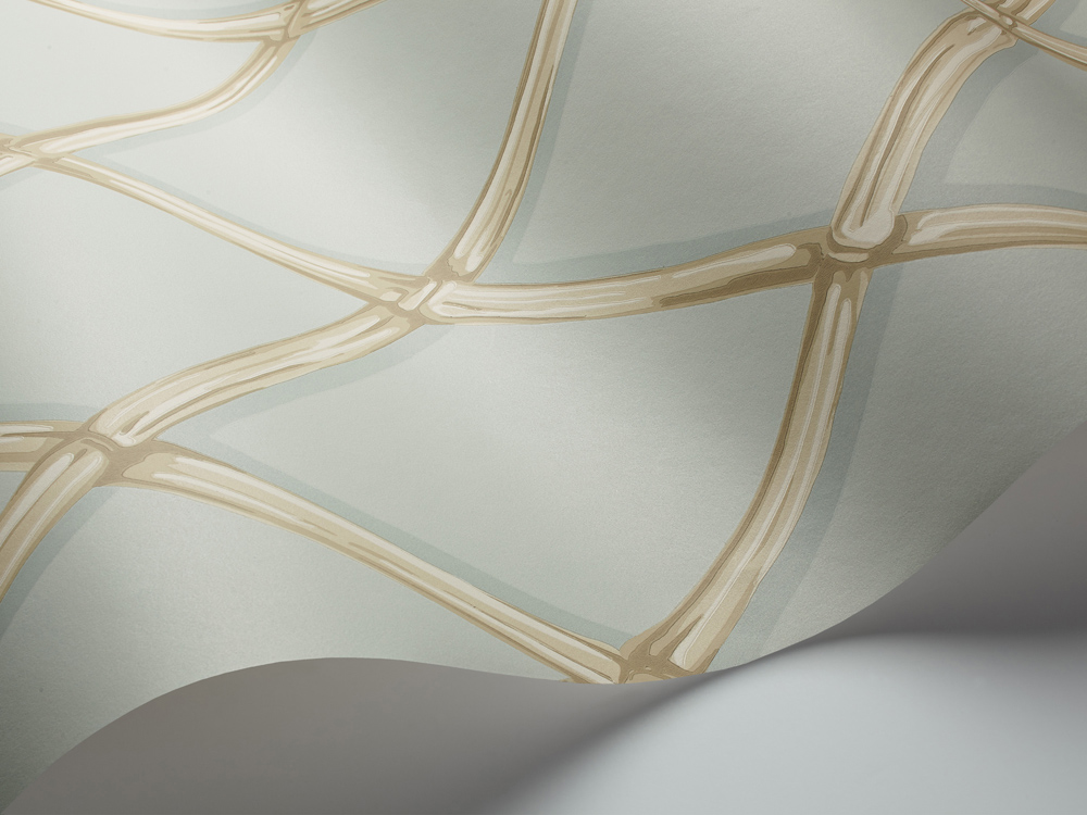 Featuring the classic bamboo trellis, this elegant latticed wallpaper is a tribute to the eighteenth-century landscaped garden of the Chateau de Bagatelle, itself designed in an Anglo-Chinese style. Shown in 5 soft color-ways of olive, duck egg, ivory, stone, and yellow.
