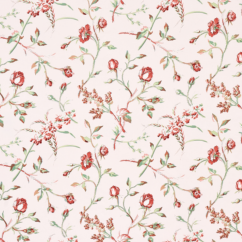 A truly unique floral unlike any other in the Schumacher archive, this scattered toss of roses looks as if it was just gathered from an English garden, awaiting arrangement.