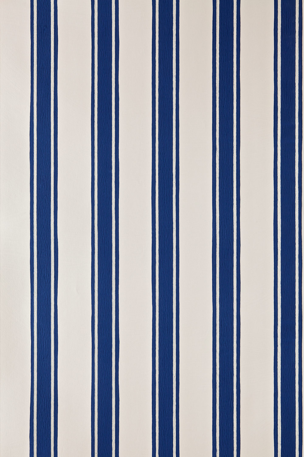 A collection of block printed stripes produced by us in the traditional manner using only our finest water based paints. Block Print Stripe 753 in Elephant’s Breath No.229, Drawing Room Blue No.253 and bespoke silver.Full roll width is 53cm/21″, roll length is 10m, stripe size is 4.7cm/1 7/8″. Available in 15 colourways.