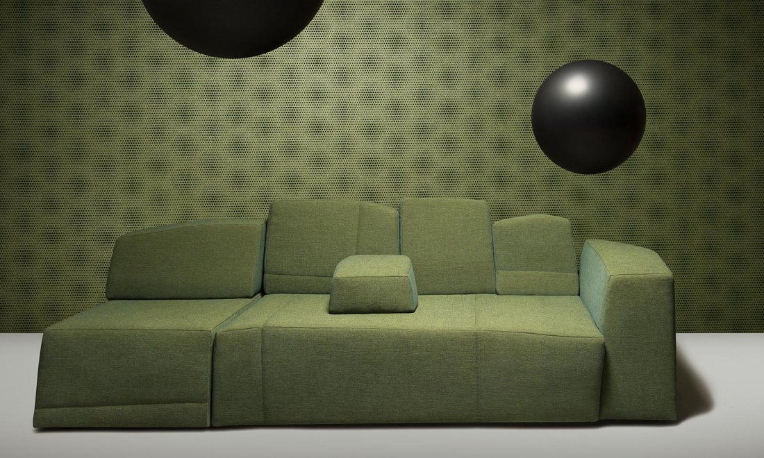 Printed wallcovering with a flock finish inspired by the mysterious Blooming Seadragon, who evolved spectacular leaf-like appendages in yellow, brown and green as a clever camouflage.