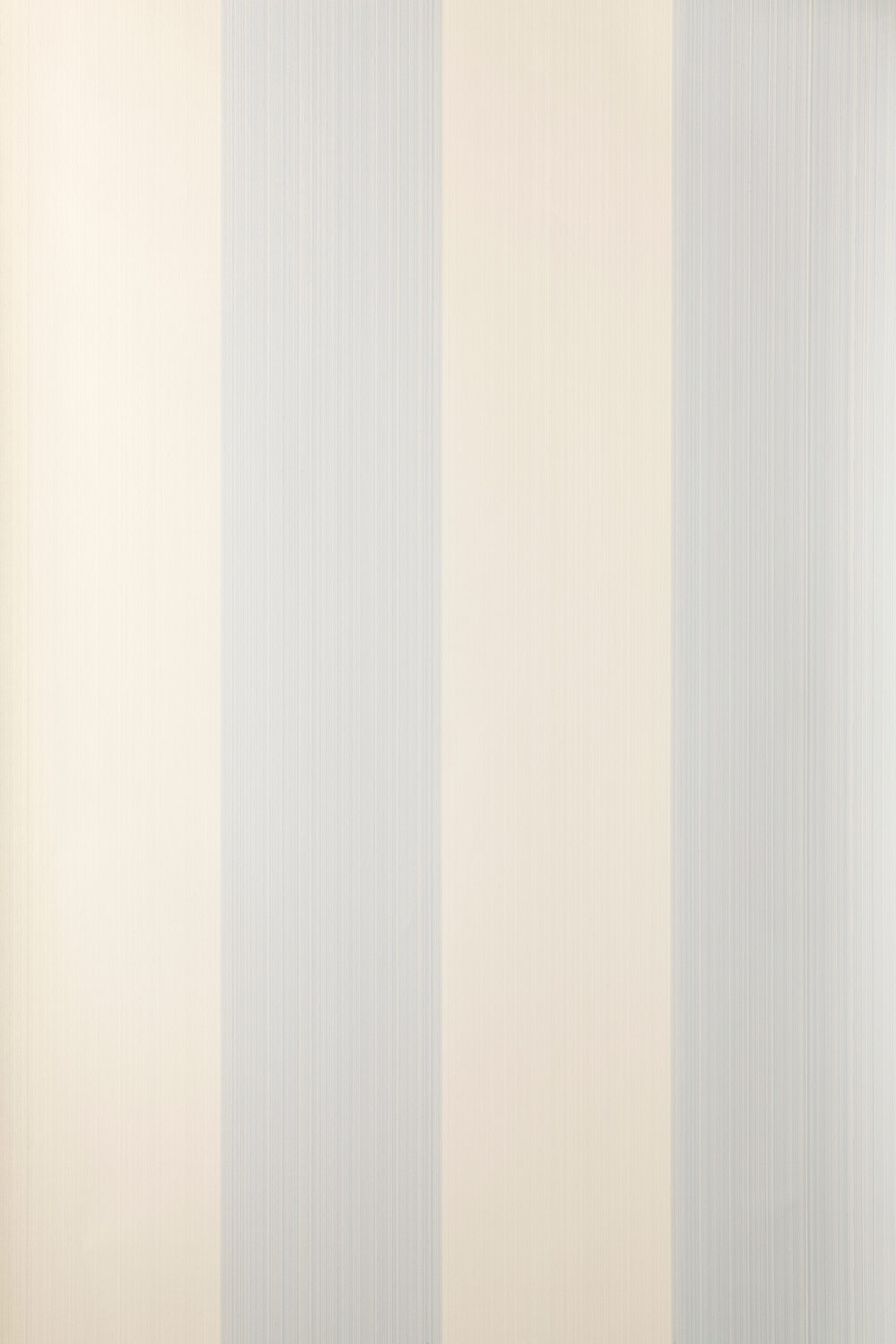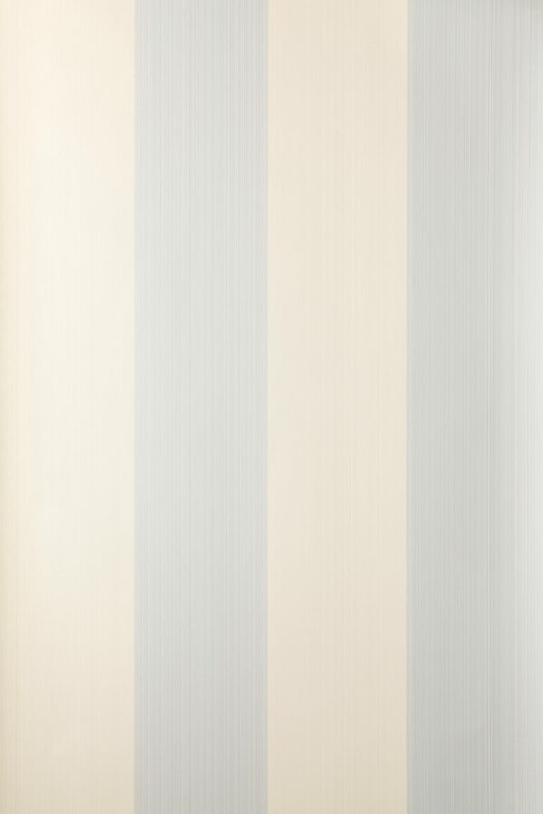 The 5¼˝ Broad Stripe is created using a traditional dragging technique. The coloured ground is traditionally trough and brush applied and the stripe made by pulling the paper under open bottomed, 5¼˝ wide troughs filled with paint. Broad Stripe 13109 in Dimity No.2008 and Skylight No.205.Full roll width is 53cm/21″, roll length is 10m, stripe size is 13cm/5 1/4″. Available in 16 colourways