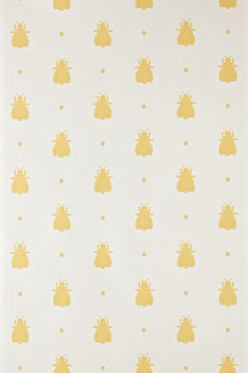 This was originally found in Josephine Bonaparte’s bed chamber as a silk fabric. Featuring an enchanting myriad of bumble bees and sprinkled with cheeky polka dots, this is a hypnotic design that inspires a beguiling sense of childish innocence and playfulness. Full roll width is 53cm/21″, roll length is 10m/11yds and pattern repeat is 16cm/6 1/4″. 3 ROLL MINIMUM WITH A 2 WEEK LEAD TIME.