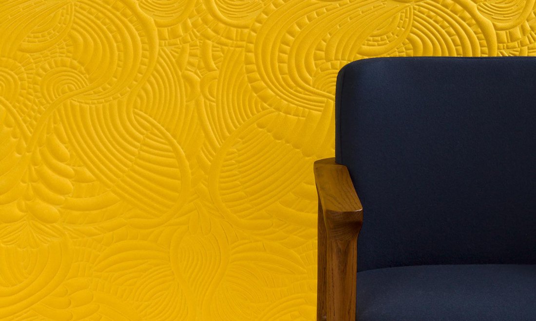 3D wallcovering with a soft suede look, inspired by the Dodo Pavone’s natural outfit – a soft plumage of silvery feathers with different nuances of grey, blue, beige and white.