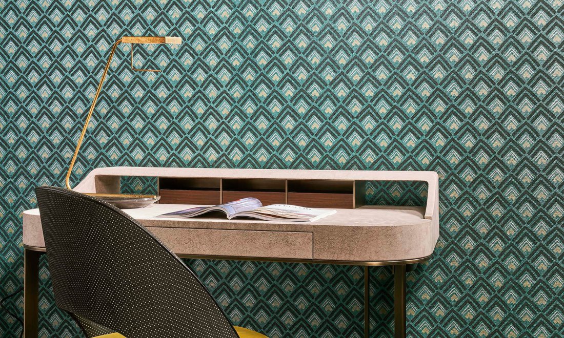 Wallcovering made of abundant materials, including soft suede, printed on natural paper weave and embroidered chinoiserie on raw cotton.