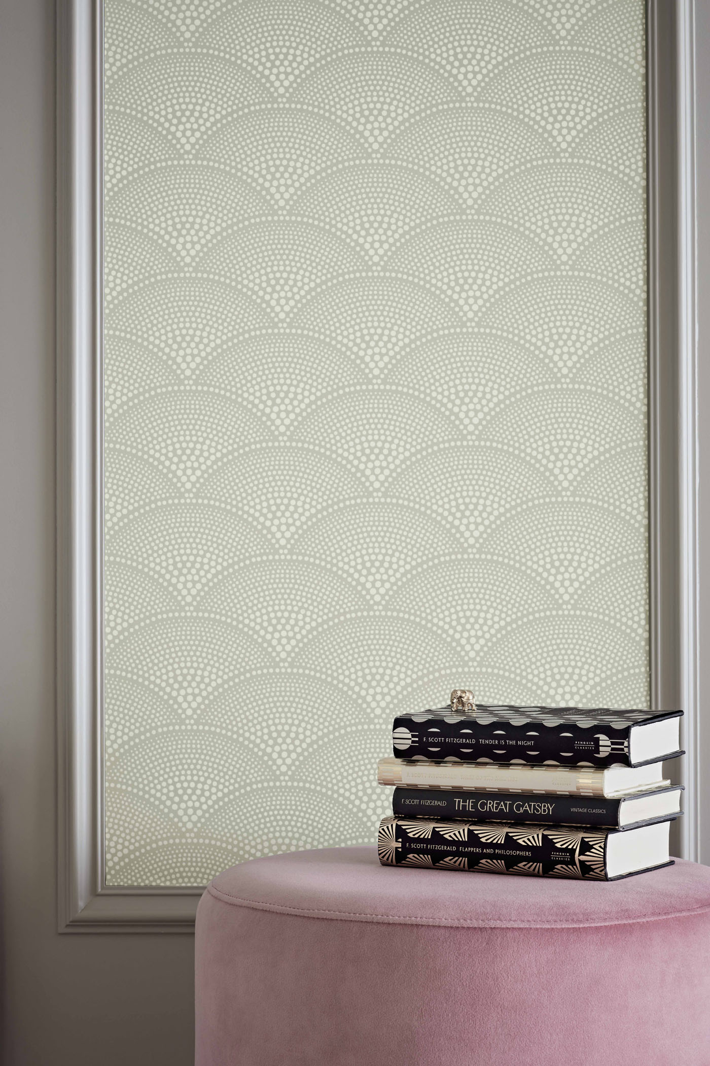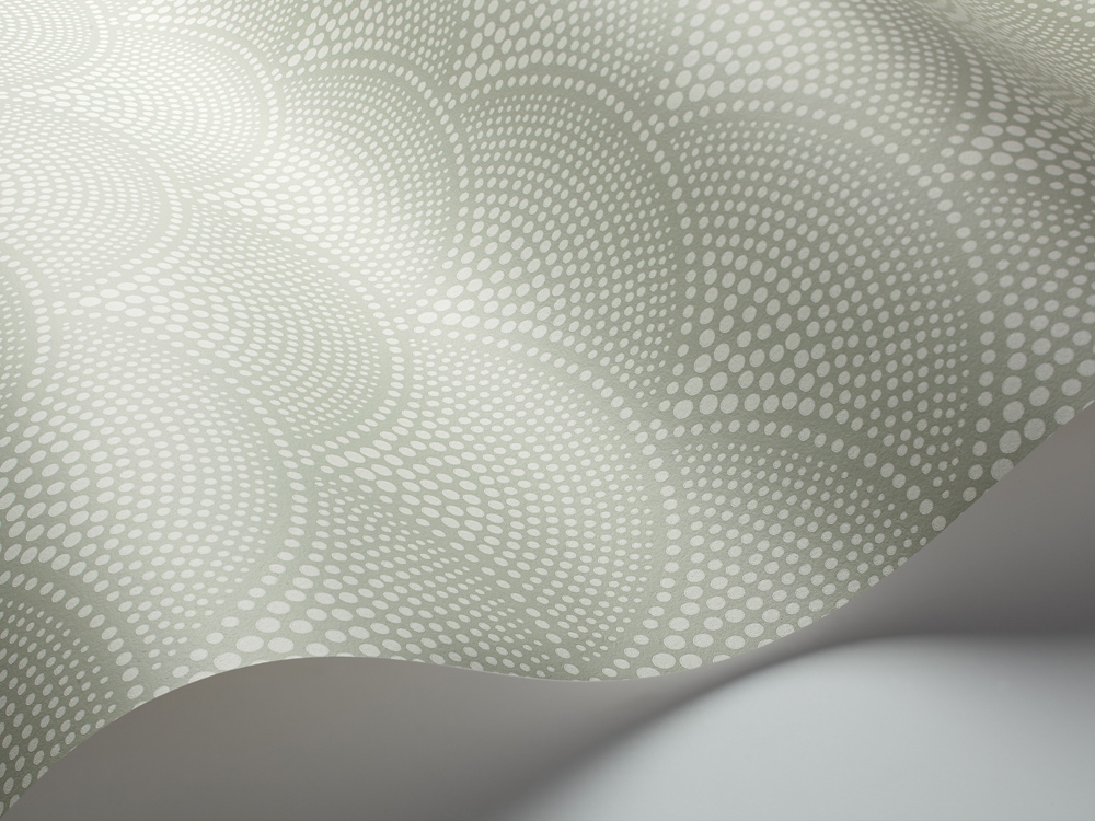 The soft Asian-inspired, geometric print of Feather Fan invites the eye wherever it is placed. The subtle luster of the Charcoal and Bronze colorway gives added depth to this delicate pointillist-like design, whilst Taupe, Ballet Slipper, Seafoam, and Old Olive provide a charmingly sophisticated art deco palette.