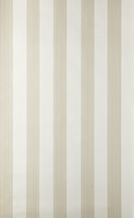 Five Over Stripe is created using a traditional dragging technique. The coloured ground is traditionally trough and brush applied and the stripe made by pulling the paper under open bottomed troughs filled with paint. A specially cut pad is used to create the design. Full roll width is 53cm/21″, roll length is 10m/11yds, pattern repeat is 5.6cm/2 1/4″.