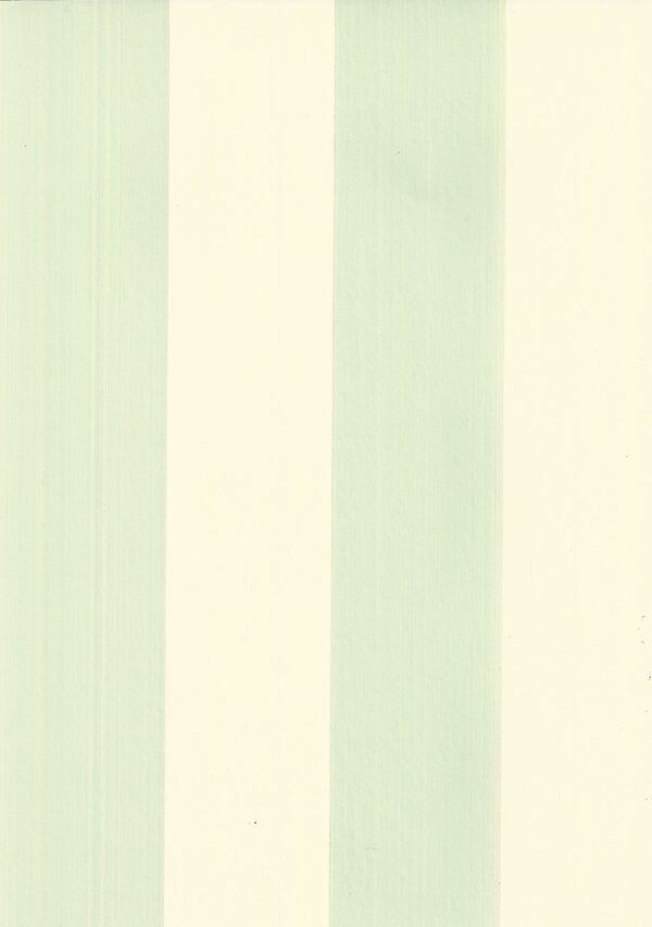 Five Over Stripe is created using a traditional dragging technique. The coloured ground is traditionally trough and brush applied and the stripe made by pulling the paper under open bottomed troughs filled with paint. A specially cut pad is used to create the design. Full roll width is 53cm/21″, roll length is 10m, pattern repeat is 5.6cm/2 1/4″.