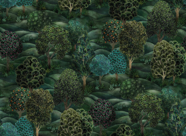 It’s no wonder that Silvan forests feature so heavily throughout literature and folklore; the sense of being wholly enveloped upon stepping into an array of trees and undergrowth as far and wide as the eye can see creating an awe-inspiring feeling. Translated here in Forest’s large-scale, intricately hand-painted, fantastical trees, the dappled light traverses through far-off branches as the dense ground cover emits the warm and welcoming woody fragrance of childhood memories.