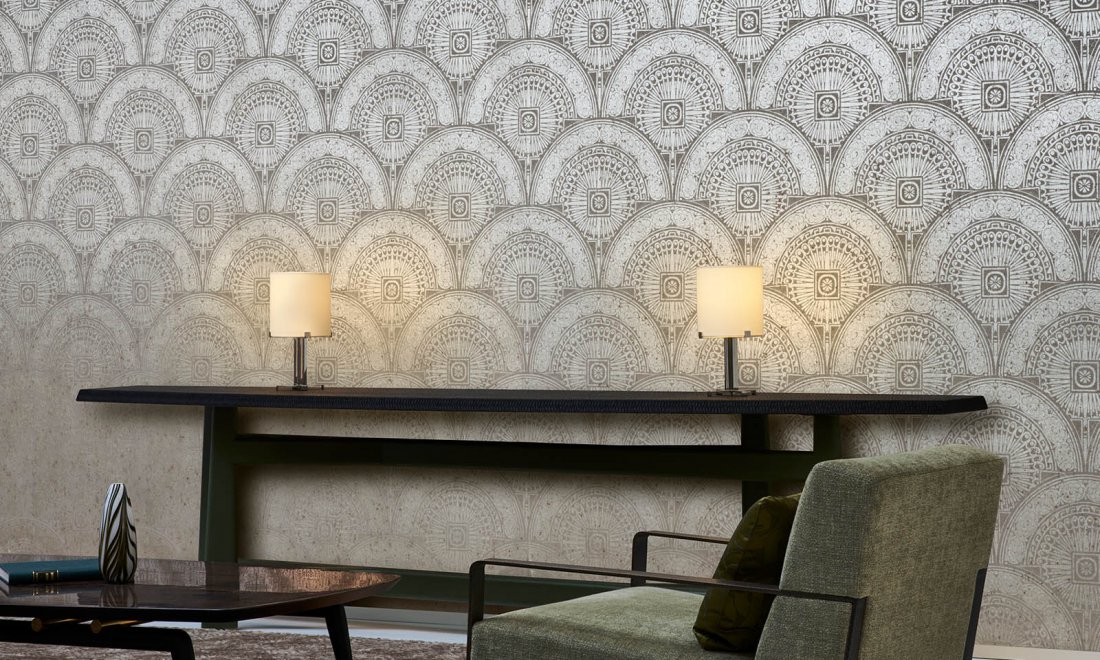 This wallcovering is made of real metal foil. During production, the metal foil goes through an intensive process that was developed especially for this collection. It is coloured in such a way that the wallcovering takes on the nuances of an authentic metal look. Finally, the patterns are embossed on the wallcovering. Matching plains can be found in collection Metal X.