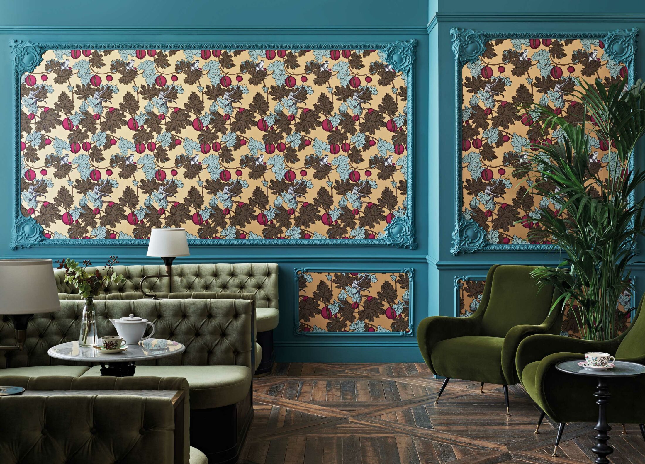 Frutto Proibito gloriously combines different archival Fornasetti motifs from the 1940s and 50s. Mischievous monkeys, originally conceptualized as striking wooden panels for the Milanese patisserie, Dulciora, sit amongst sprawling pomegranate tree branches. The playful composition of flora and fauna is quintessentially Fornasetti, mixing lifelike etchings with decadent, bold prints. Deep Ink and Gold grounds accentuate Magenta and Plum forbidden fruits, whilst Cerulean and Orange offer a bright, sunny alternative.