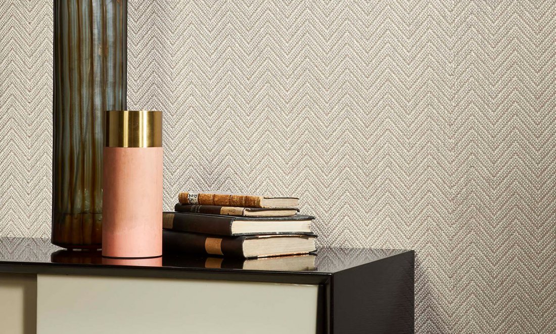 Wallcovering made of abundant materials, including soft suede, printed on natural paper weave and embroidered chinoiserie on raw cotton.