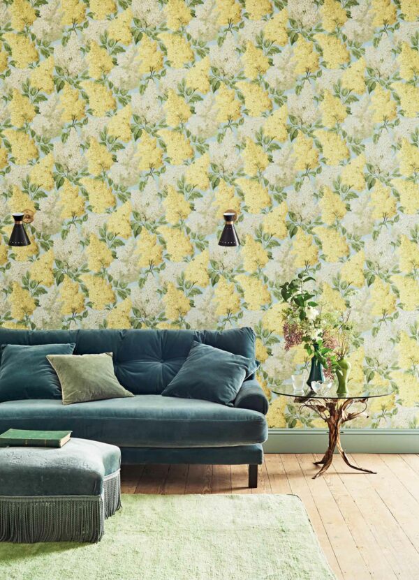 The spring-flowering Lilac Syringa vulgaris is a beautifully lush deciduous shrub known for its redolent fragrance. Thriving whatever its aspect, this hardy, easily-cultivated plant can be found in gardens throughout the British Isles. The Cole & Son design studio have cultivated this classic floral loved for its exquisite large, oval clusters of colorful foliage in true-to-life tones of lavendered Lilac & soft Dove on White, contemporary Magenta & Blush on Charcoal, as well as two spring palettes of Ballet Slipper & Dove on Silver Birch, and Lemon & Old Olive on Print Room Blue. Screen printed to retain the soft, delicate density of trusses abundant with fragrant flowers, Lilac is an utterly beguiling interior option for country cottages to contemporary city abodes.