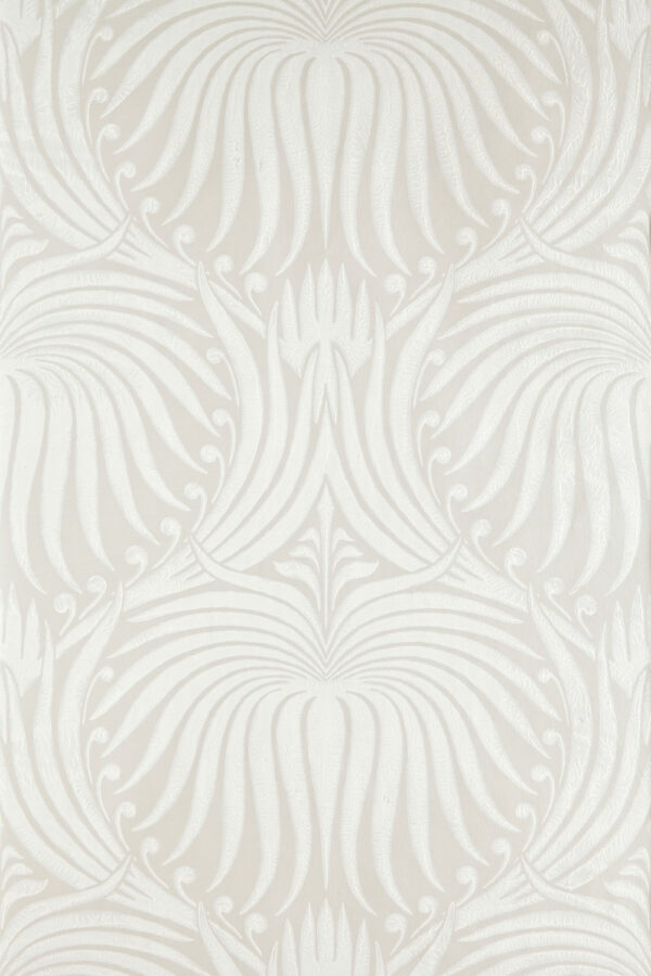 The Lotus Papers are an artisanal lotus-flower design, which is drawn from 19th century French archives and influenced by the Arts & Crafts Movement. Lotus 2007 in Skimming Stone No.241 and Pointing No.2003.Full roll width is 53cm/21″, roll length is 10m, large pattern repeat is 51.8cm or 20 3/8″. Available in 14 colourways.