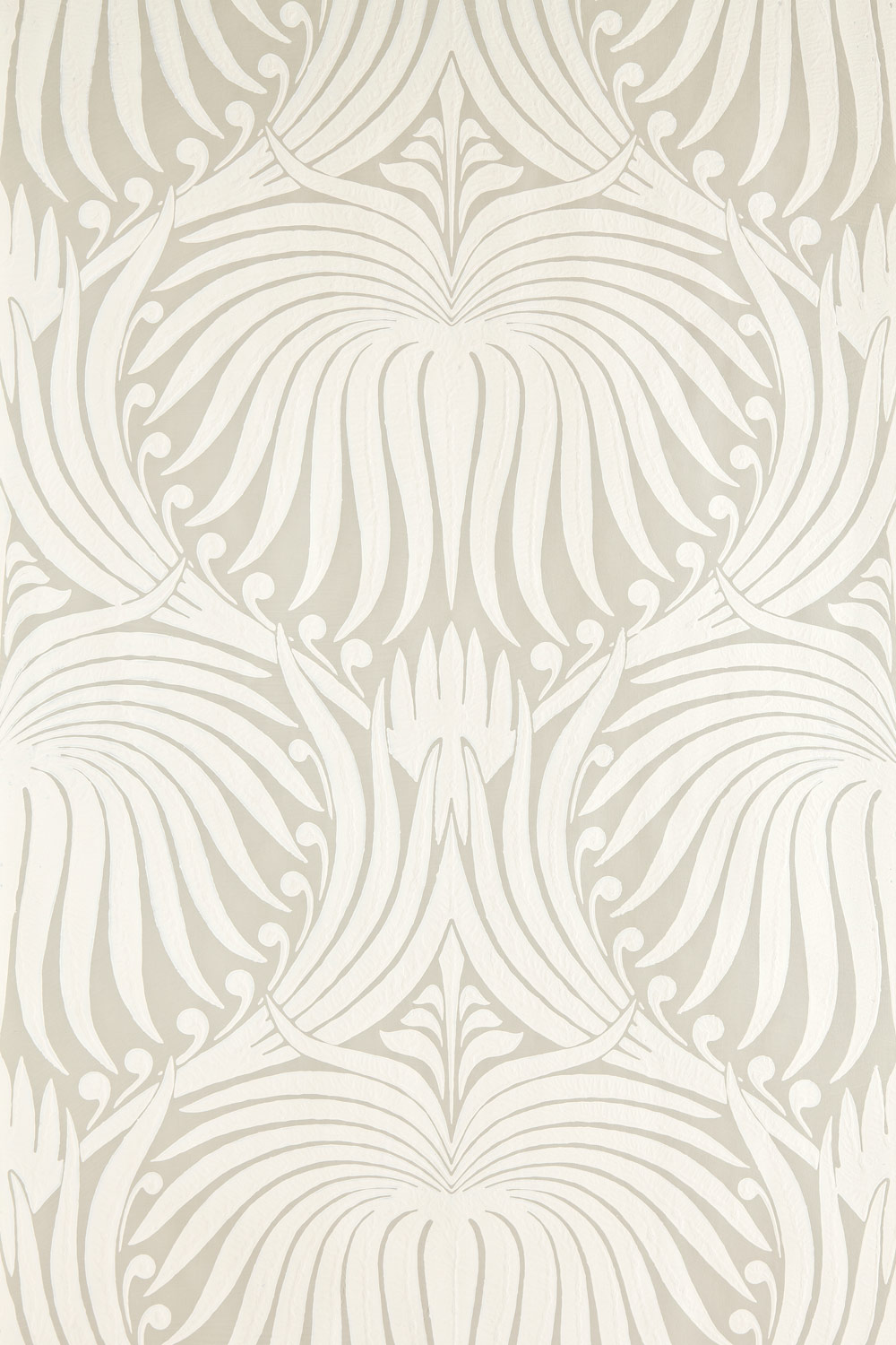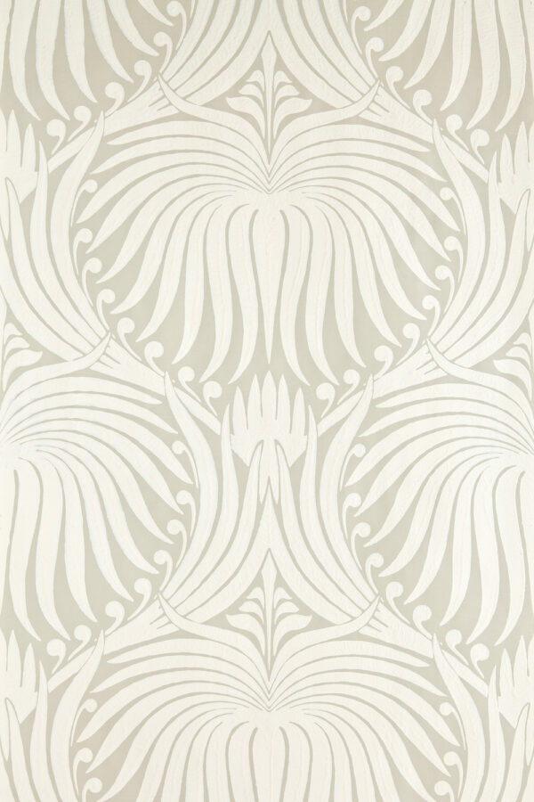 The Lotus Papers are an artisanal lotus-flower design, which is drawn from 19th century French archives and influenced by the Arts & Crafts Movement. Lotus 2009 in Old White No.4 and Clunch No.2009.Full roll width is 53cm/21″, roll length is 10m, large pattern repeat is 51.8cm or 20 3/8″. Available in 14 colourways.