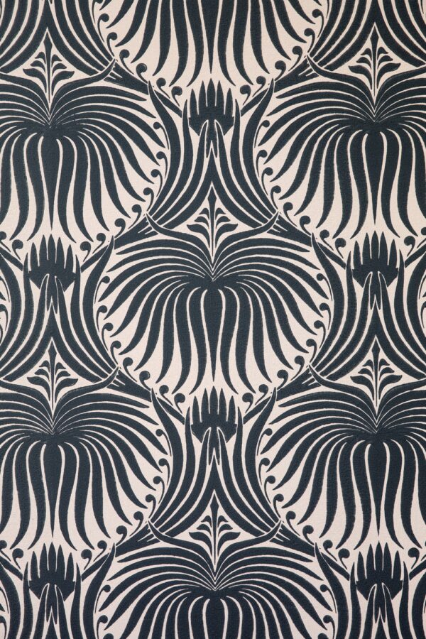 The Lotus Papers are an artisanal lotus-flower design, which is drawn from 19th century French archives and influenced by the Arts & Crafts Movement. Full roll width is 53cm/21″, roll length is 10m, large pattern repeat is 51.8cm or 20 3/8″