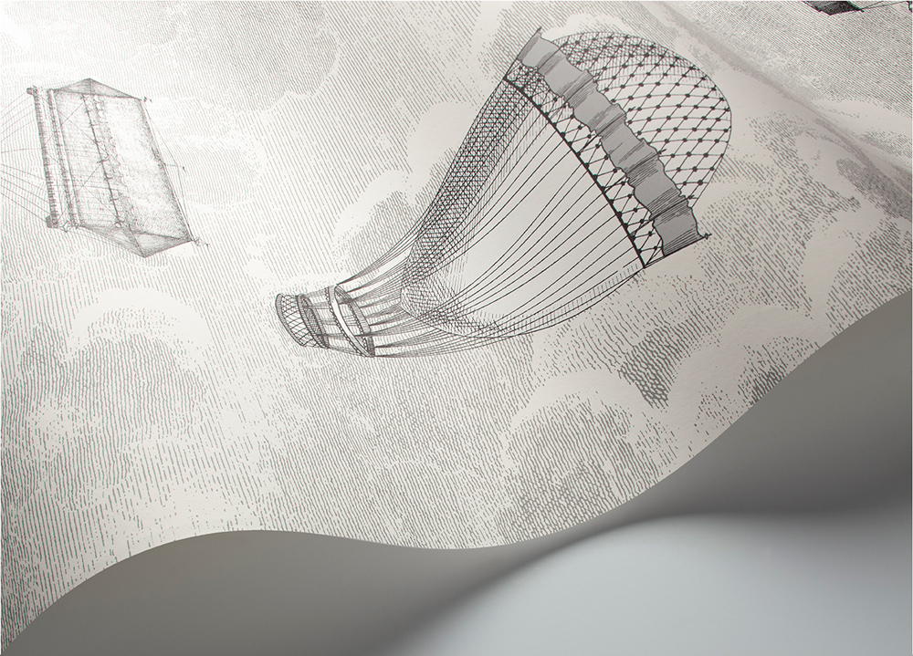 Filled with characterful New World charm, the wondrous fabled ‘flying machines’ of Macchine Volanti evoke childhood fantasy and adventure. Explore the outer limits of your imagination by getting lost in the enveloping skyscape filled with man, machine and ethereal creatures in palettes of Stone, Rouge and Blue, Midnight, and Soot and Snow.