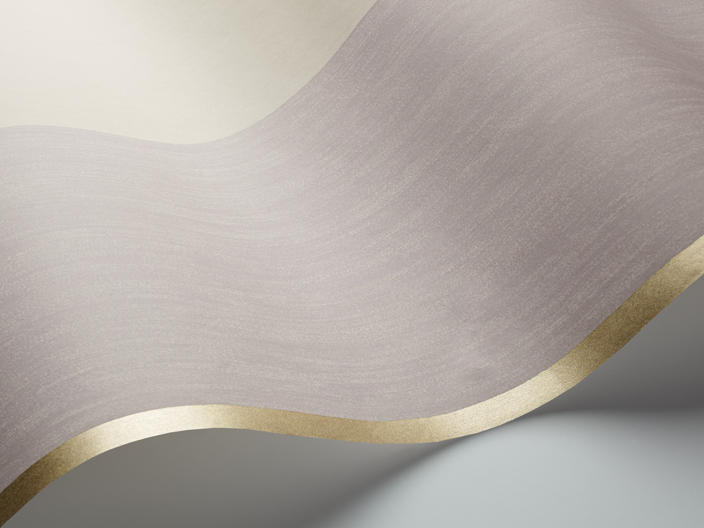 Named after the small royal residence of Louis XIV, the Marly wallpaper features an elegant wide painterly stripe of chalky hues of lavender, duck egg, yellow and pale blue decorated with thin ribbons of metallic gold, silver, and bronze.