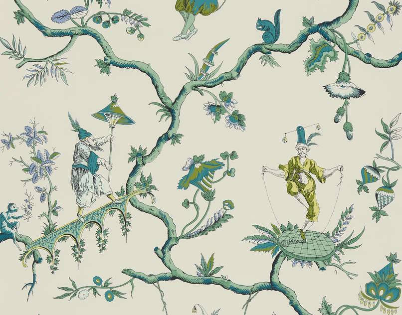 Taking from one of the House’s emblematic prints, known under the reference L2804, MIKADO is loosely based on the fabric design called “Chinese Acrobats”. To create this design, which was printed in the Senn Bidermann & Cie factory in Wesserling in 1790, the designer used several works by Pillement. Screen printing by hand.