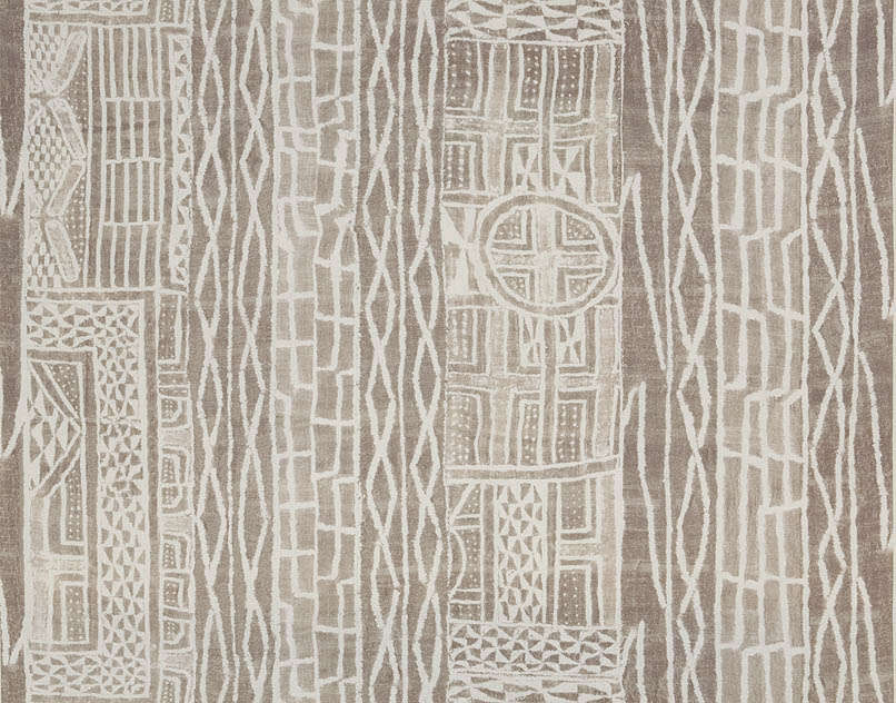 This linen print is a reproduction of a ceremonial hanging from Cameroon dating the early 20th century. These fabrics, known by the name Ndop, are used by the Bamilke and the Bamoun tribes during ceremonials. The design reproduces a stylized plan of great palaces and serves a metaphor of power. Composition: Linen 100%, Color: Natural, Style: Journeys “Around the World”, Width: 52.36″/133 cm, Type of repeat: Horizontal: 52.36″/133 cm, Vertical: 40.15″/102 cm