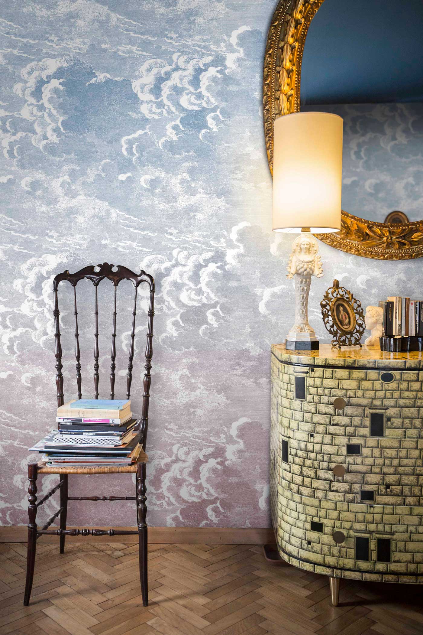 Created from an atmospheric etching of clouds, the subtle line work and delicate detail render Nuvole one of Fornasetti’s most magnificent and beloved designs. With its billowing clouds rolling across a romantic sky, Cole & Son has updated this arresting study with a unique ombré, encompassing the colour and light of an ever-changing sky.