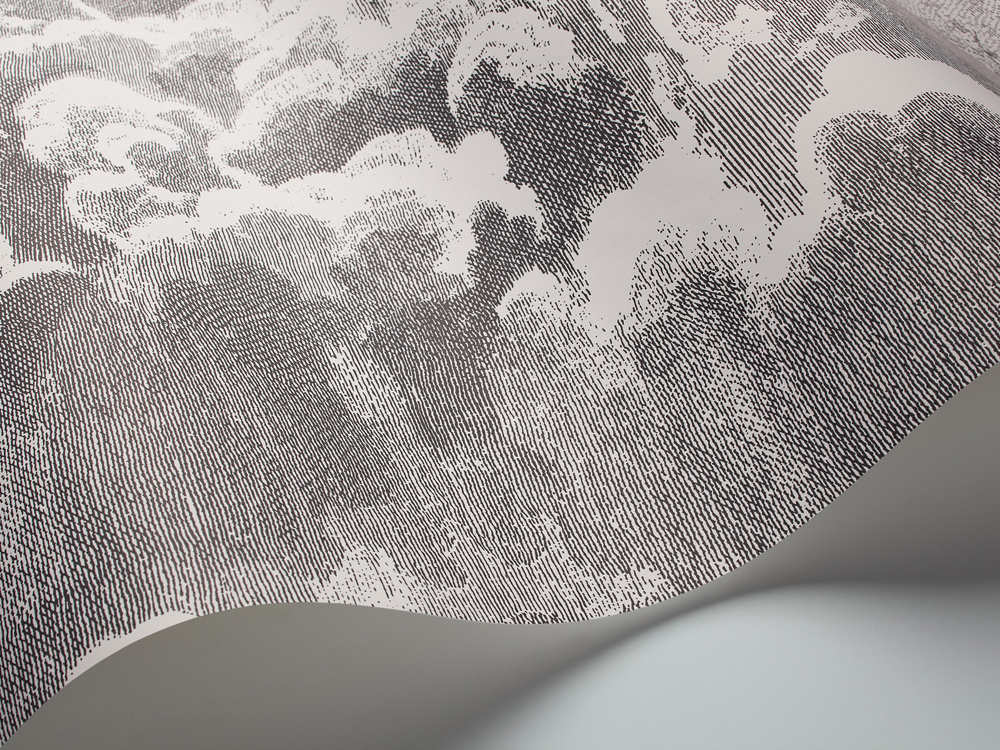 A smaller-scale version of the mural Nuvole, Nuvolette, is one of the most enduring Fornasetti designs. The sky was long a recurring vision for Fornasetti and these ‘little clouds’ are delicately detailed etchings depicting tempestuous, rolling skies. The Fornasetti collection introduces new metallic, lustered colourways of Gilver and Charcoal, and Pearl creating endless movement across this enchanting design.