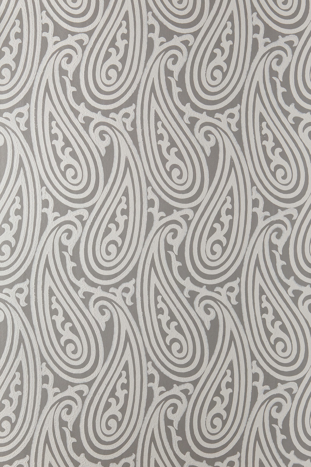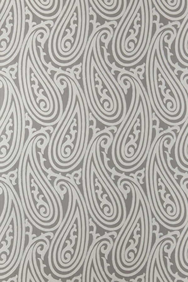 Taken from an 1800s French jacquard,Paisley is a contemporary version of thetimeless paisley design so often seen in theworlds of fashion and interior design. Paisley 4703 in Mole’s Breath No.276 and Purbeck Stone No.275.Full roll width is 53cm/21″, roll length is 10m, pattern repeat 29cm / 11 7/16″. Available in 7 colourways.