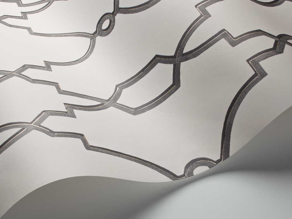 A delicate trellis design inspired by the intricate garden designs of 16th and 17th century France and still found in many parks and gardens today. This wallpaper pattern is printed in seven delightful colorings including stone, charcoal, French grey, cobalt, green, classic red, and metallic gold.