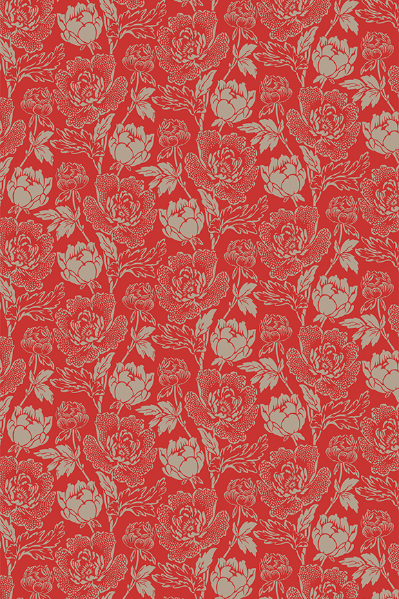 Peony is a classic English floral pattern drawn from 19th-century pure silk woven jacquard’s. Based on the ornamental Peony flower, this sumptuous and curvaceous design brings contemporary glamour to a traditional and romantic floral print. Full roll width is 53cm/21″, roll length is 10m/11yds, pattern repeat is 62.8cm/24 3/4″. 3 ROLL MINIMUM WITH A 2 WEEK LEAD TIME.