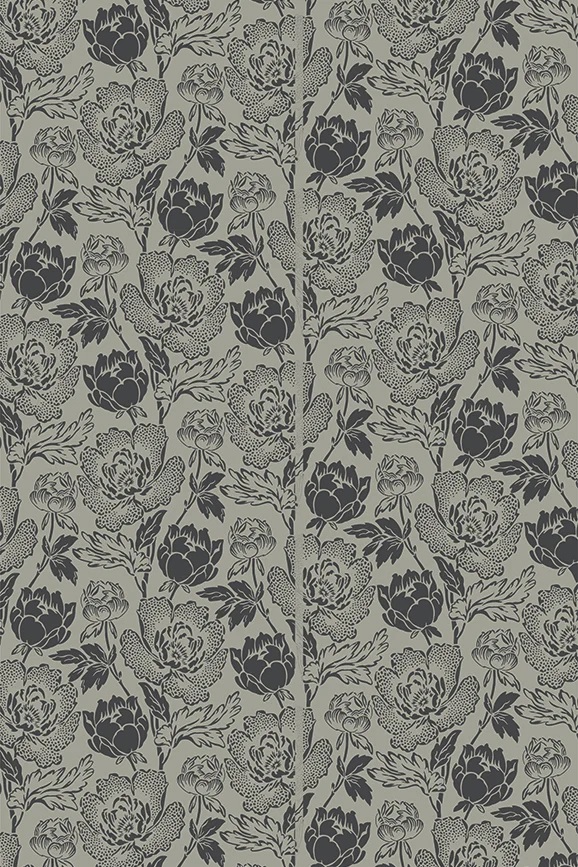 Peony is a classic english floral pattern drawn from 19th century pure silk woven jacquards. Based on the ornamental Peony flower, this sumptuous and curvaceous design brings contemporary glamour to a traditional and romantic floral print. Full roll width is 53cm/21″, roll length is 10m/11yds, pattern repeat is 62.8cm/24 3/4″. Available in nine colourways.