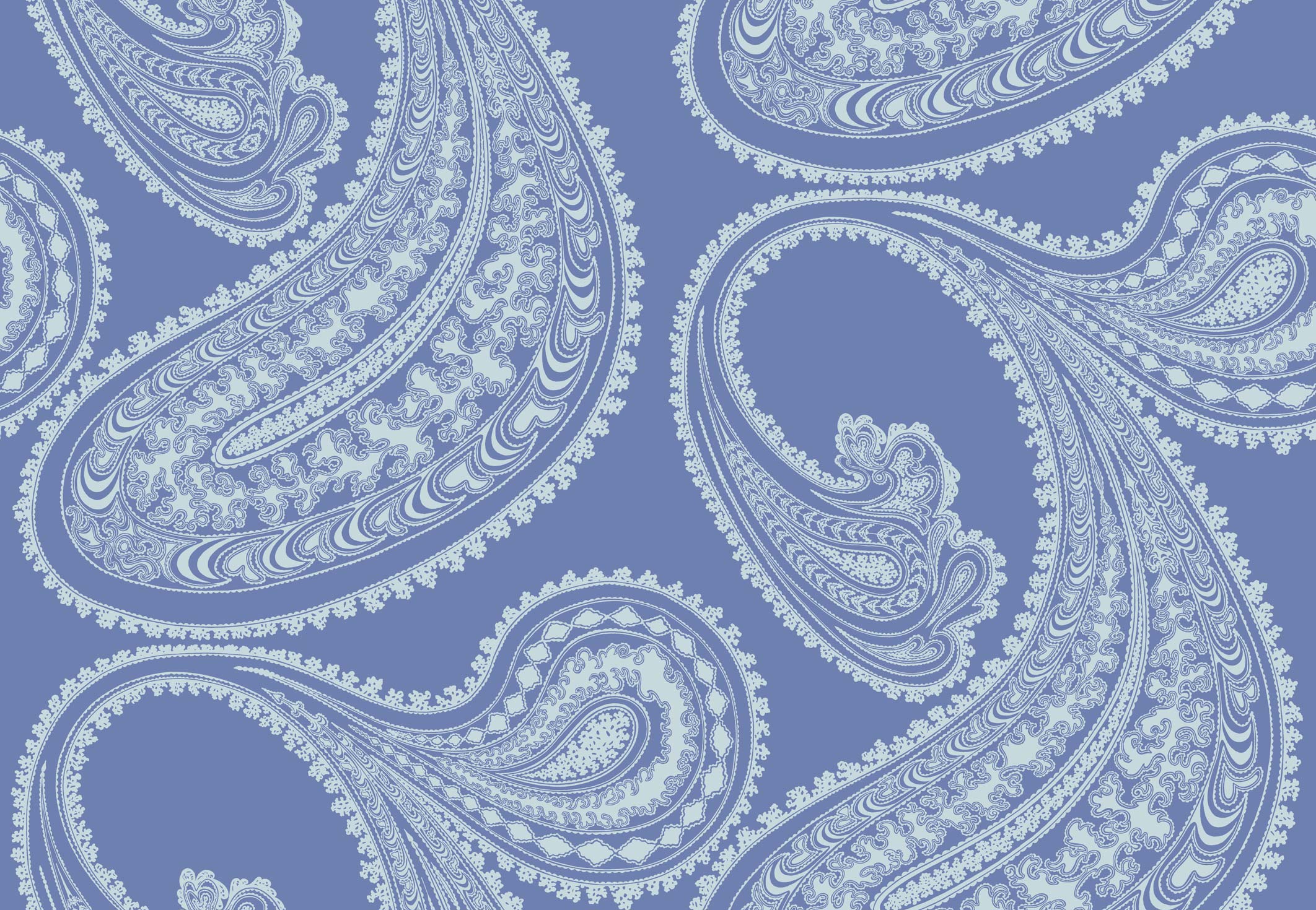 Rajapur Flock is a beautiful large-scale paisley design with a textured flock. A simple, elegant layout combines with pale flocking to convey a delicate grandeur. Available in two arresting color palettes; warmed Yellow and White and stately Hyacinth and White.
