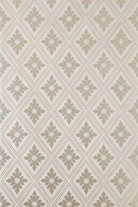 A stunning adaptation of an elegant neoclassical wallpaper design, featuring an architectural diamond trellis border with a delicate foliate motif. Full roll width is 53cm/21″, roll length is 10m/11yds, pattern repeat is 54cm/21 1/4″.