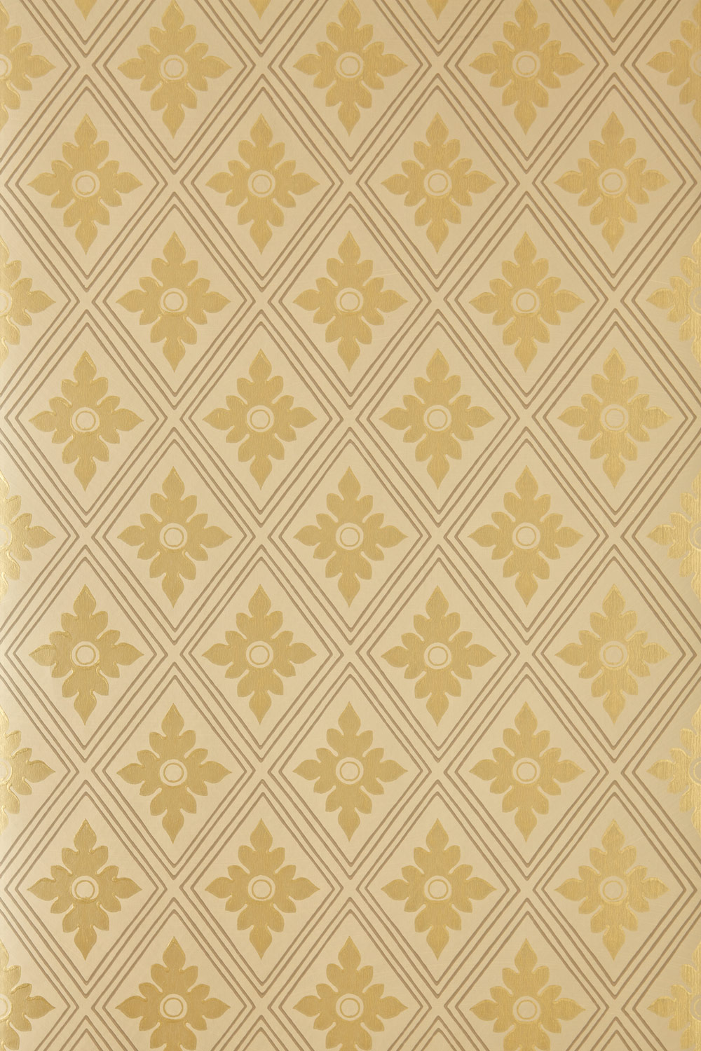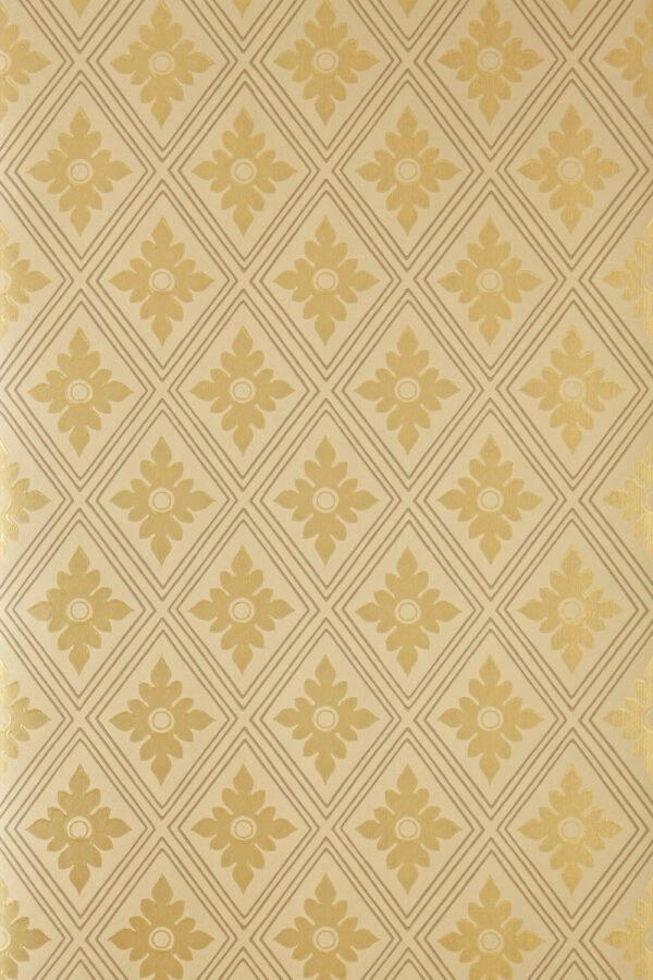 A stunning adaptation of an elegant neoclassical wallpaper design, featuring an architectural diamond trellis border with a delicate foliate motif. Ranelagh 1815 in Biscuit No.38 (archived), Dauphin No.54 (archived) and bespoke gold.Full roll width is 53cm/21″, roll length is 10m, pattern repeat is 17.8cm/7″. Available in 3 colourways.