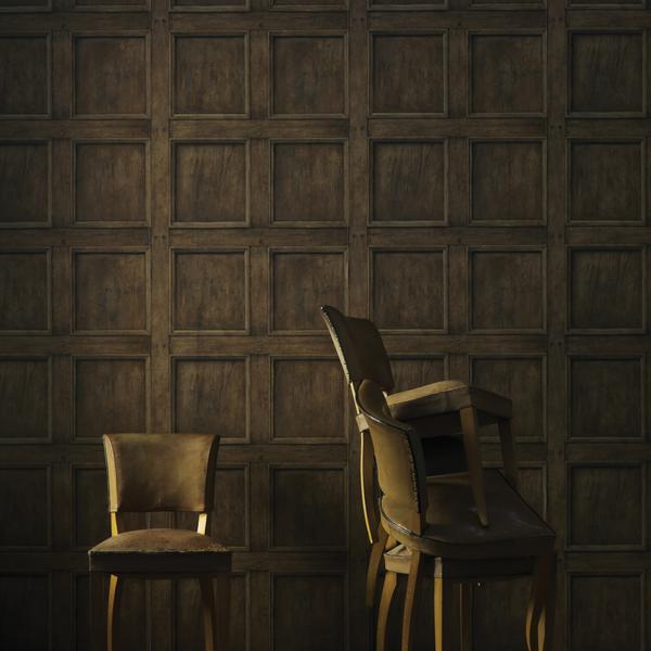 A stylish wood panel wallpaper design featuring excellent detail and shading to create a highly authentic traditional wood panelling effect. Part of the Engineer Collection, inspired by film sets, find Regent in 5 different colourways.