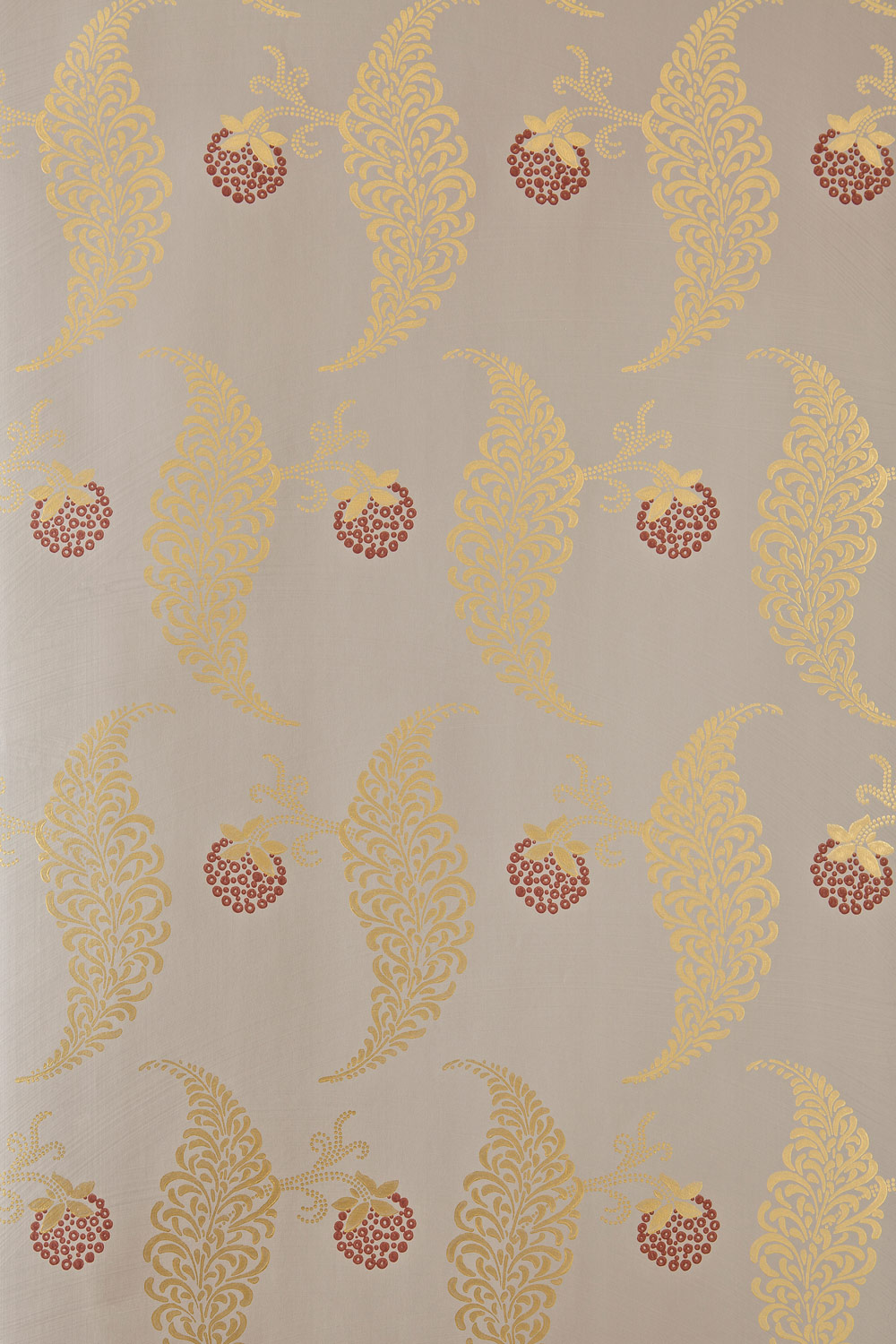The Rosslyn Papers are a charming reproduction of a nineteenth century English cotton print, featuring a delicate design with a hint of the botanical. Rosslyn 1925 in Charleston Gray No.243, bespoke gold and Eating Room Red No.43.Full roll width is 53cm/21″, roll length is 10m, pattern repeat is 42cm/16 1/2″. Available in 10 colourways.