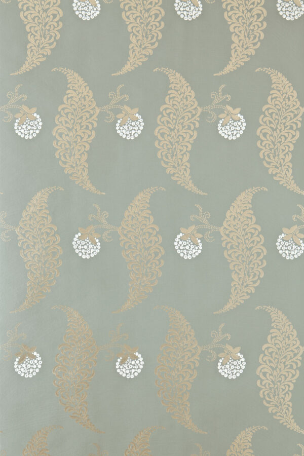 The Rosslyn Papers are a charming reproduction of a nineteenth century English cotton print, featuring a delicate design with a hint of the botanical. Rosslyn 1938 in Pigeon No.25, bespoke bronze and Pointing No.2003.Full roll width is 53cm/21″, roll length is 10m, pattern repeat is 42cm/16 1/2″. Available in 10 colourways.