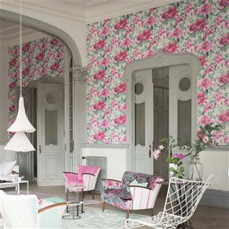 A graceful floral print of trailing roses and peonies. This painterly recreation of a blossoming garden is full of colour and life, and printed on easy-hanging, washable non-woven paper. Collection: Shanghai Garden WALLPAPER, Composition: NON-WOVEN wallpaper, Width: 27in, Weight: 4.42oz/yd2, Vertical Pattern Repeat: 30in, Pattern Match: Half drop, Additional Info: Roll: 10m/11-yards – Washable – Paste the wall