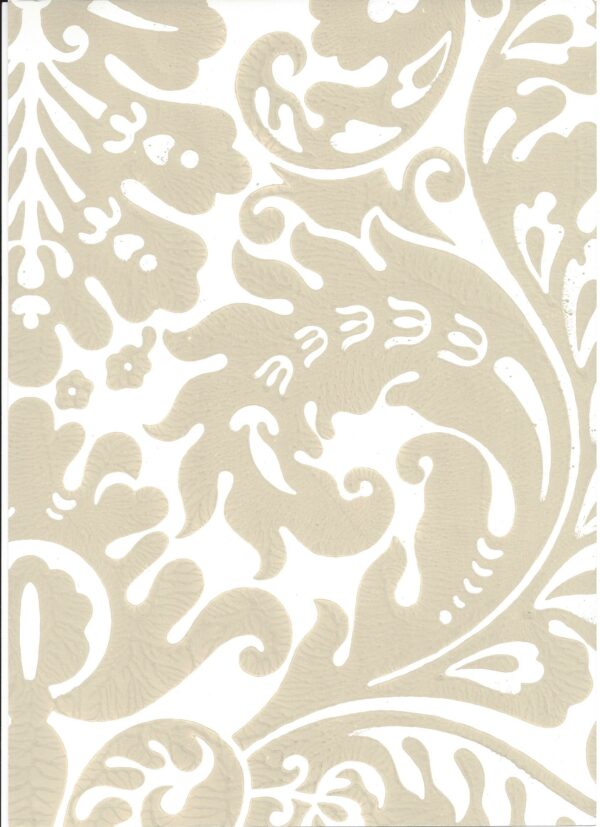 An early 19th-century English damask paper originally printed at Silvergate in Norfolk. Full roll width is 53cm/21″, roll length is 10m/11yds, pattern repeat is 131cm/51 1/2″. 3 ROLL MINIMUM WITH A 2 WEEK LEAD TIME.
