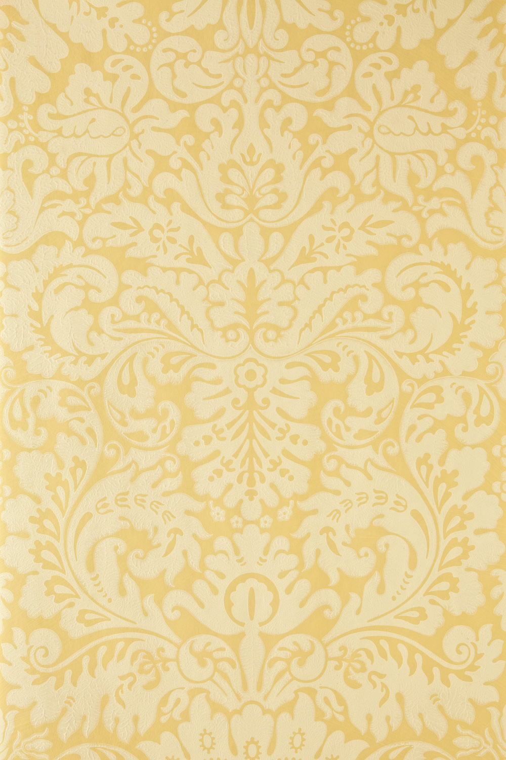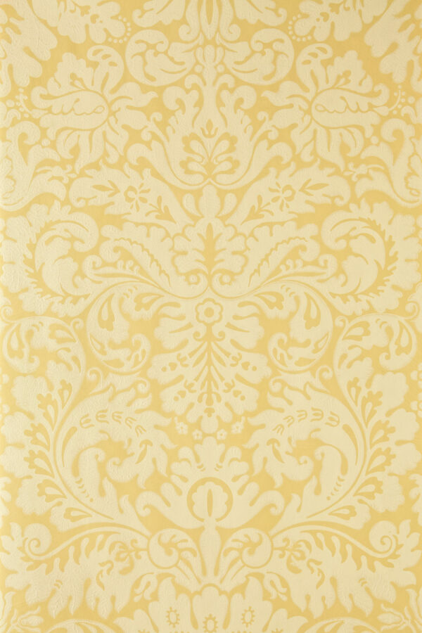 An early 19th century English damask paper originally printed at Silvergate in Norfolk. Silvergate 827 in Yellow Ground No.218 and Dayroom Yellow No.233. Full roll width is 53cm/21″, roll length is 10m, pattern repeat is 131cm/51 1/2″. Available in 16 colourways.