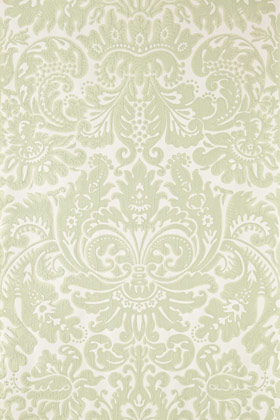 An early 19th-century English damask paper originally printed at Silvergate in Norfolk. Full roll width is 53cm/21″, roll length is 10m/11yds, pattern repeat is 131cm/51 1/2″.