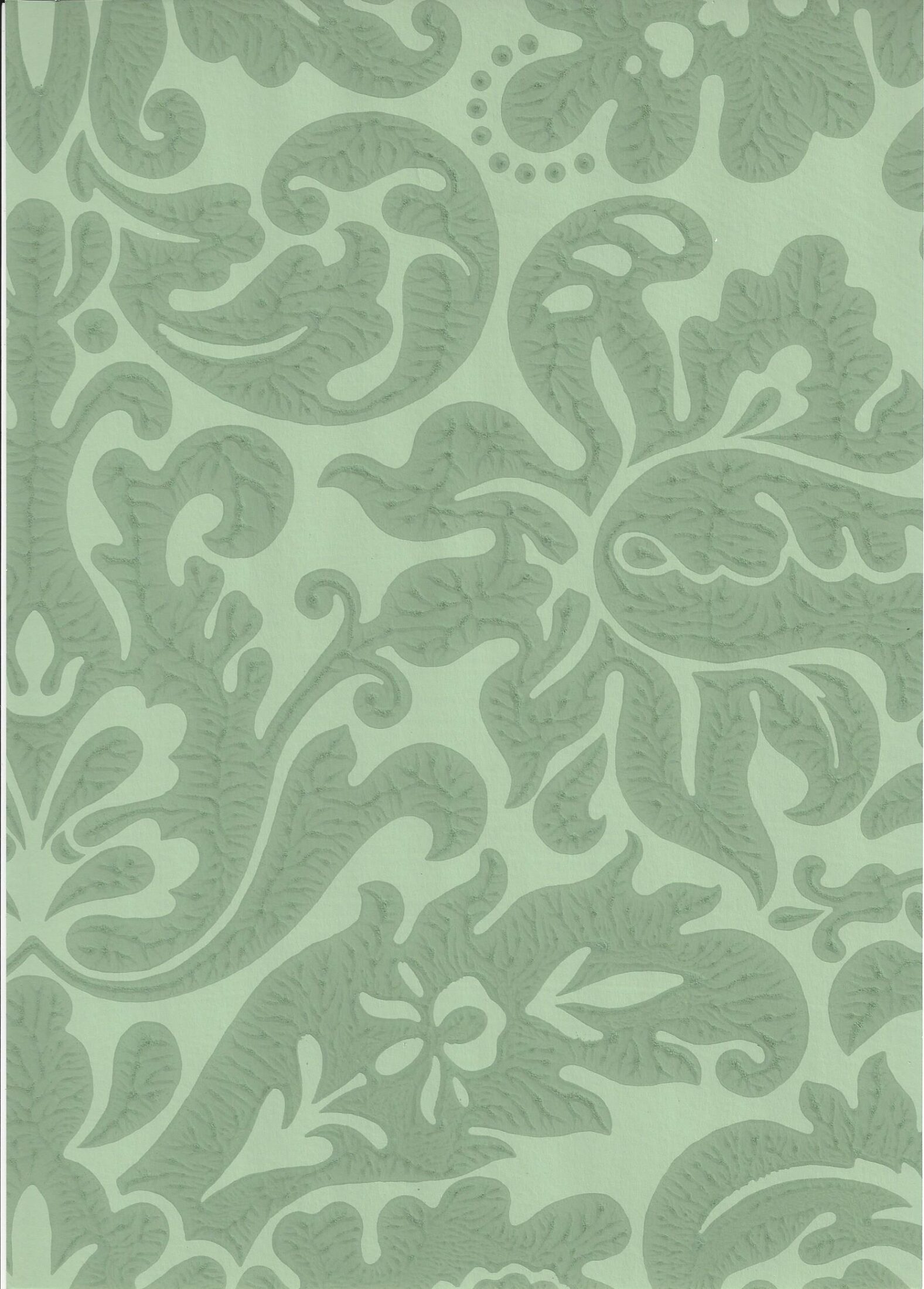 An early 19th-century English damask paper originally printed at Silvergate in Norfolk. Full roll width is 53cm/21″, roll length is 10m/11yds, pattern repeat is 131cm/51 1/2″. 3 ROLL MINIMUM WITH A 2 WEEK LEAD TIME.