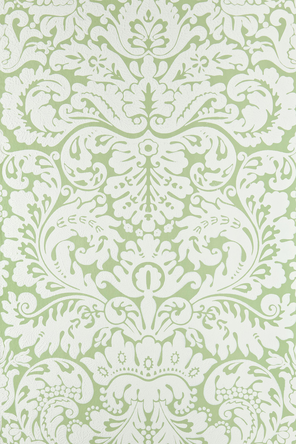 An early 19th century English damask paper originally printed at Silvergate in Norfolk. Silvergate 882 in Yeabridge Green No.287 and Cromarty No.285.Full roll width is 53cm/21″, roll length is 10m, pattern repeat is 131cm/51 1/2″. Available in 16 colourways.